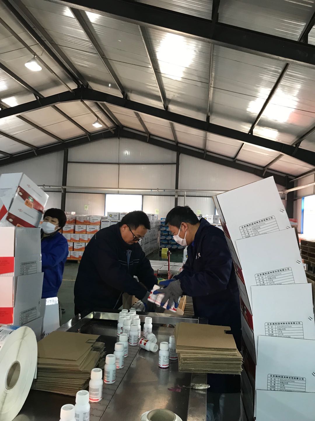 按照慣例3月17-18日雙休日,行政部門職工在家休息,由于生產(chǎn)任務(wù)緊迫,公司決定安排兩條生產(chǎn)線同時(shí)啟動(dòng),每天需要包裝人員18人,號(hào)召大家自愿選擇1天參加車間生產(chǎn)。通知一發(fā)出,大家積極響應(yīng),不到1個(gè)小時(shí)的時(shí)間,人員全部到位。周六涿州的天氣下起了春雪,氣溫0-5℃,這時(shí)的北方已停止供暖,更覺寒冷,這樣的工作環(huán)境絲毫沒有降低涿州公司干部職工的工作熱情,你看辦公室的張艷主動(dòng)放棄自己的哺乳時(shí)間和大家一起完成任務(wù)后下班,工作時(shí)間抽不開身的供儲(chǔ)部武文斌在認(rèn)真地旋蓋,生產(chǎn)部的張玲翠在貼兩條生產(chǎn)線上的產(chǎn)品合格證,銷售部長王江風(fēng)、推廣部部長趙斌在一起有條不紊地在裝箱等等一大批優(yōu)秀的干部職工熱火朝天地參與生產(chǎn),忘記了寒冷,圓滿完成當(dāng)天既定的生產(chǎn)任務(wù)。