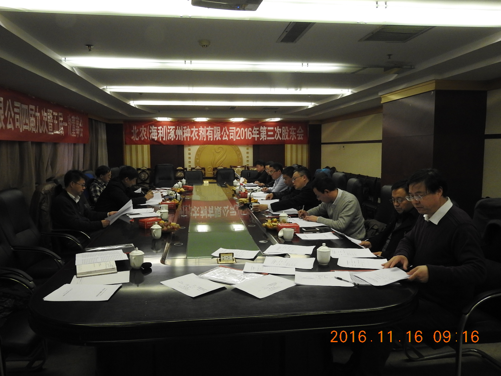 北農(nóng)(海利)涿州種衣劑有限公司四屆九次暨五屆一次董事會于2016年11月16日上午在河北省涿州市匯元酒店召開。湖南海利高新技術(shù)企業(yè)集團公司黨委龔小波書記、北京中農(nóng)大地科技發(fā)展有限公司張文立董事長、張永生總經(jīng)理等領(lǐng)導(dǎo)參加了會議。會議按照《公司法》和《公司章程》產(chǎn)生了第五屆董事會、監(jiān)事會和經(jīng)營班子成員。名單如下:
